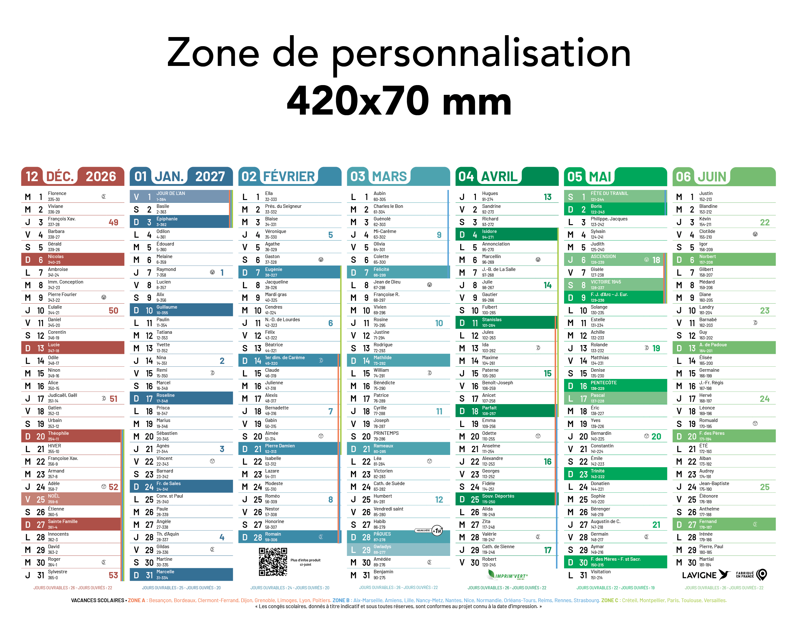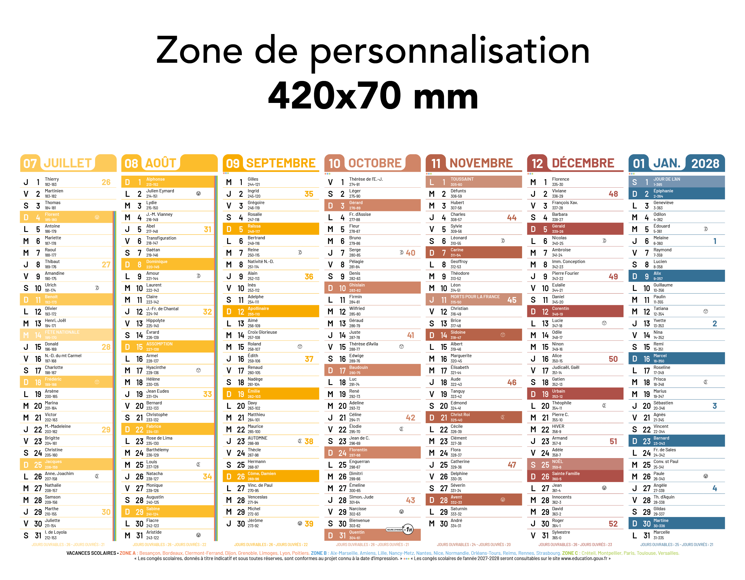 Zone de personnalisation : 420 x 70 mm