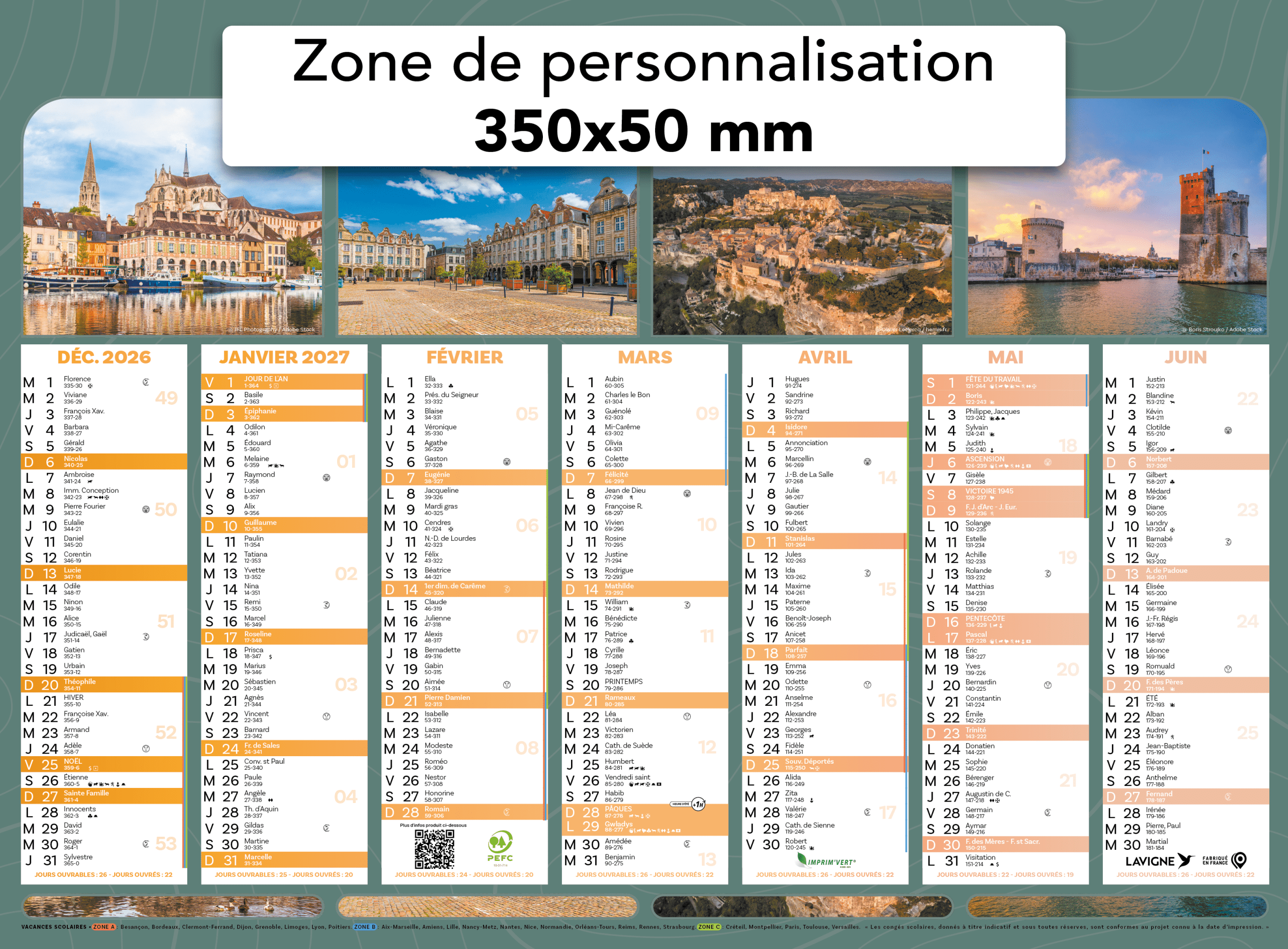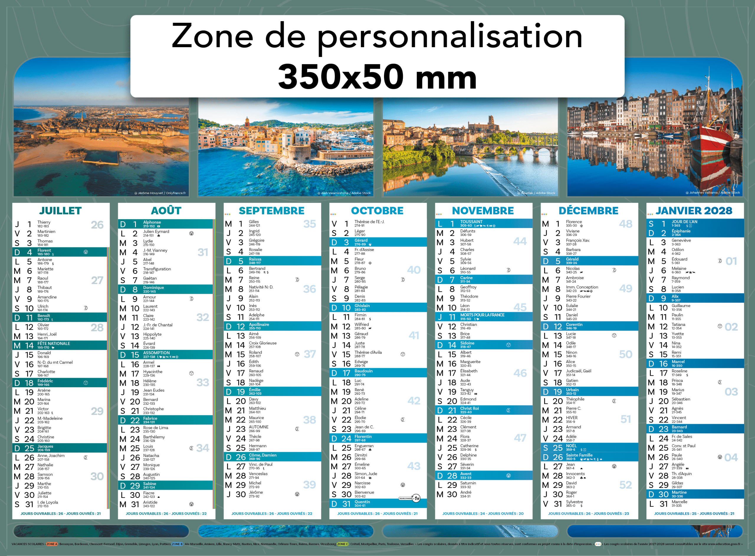 Zone de personnalisation : 350 x 30 mm