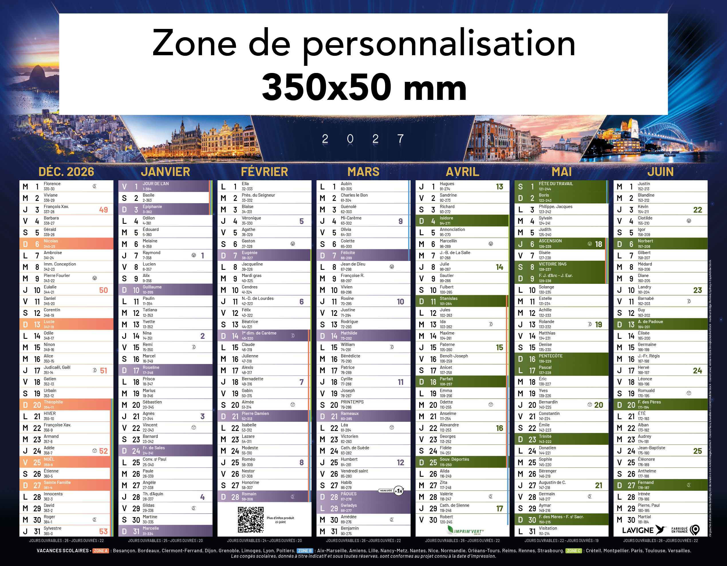 Zone de personnalisation : 330 x 30 mm