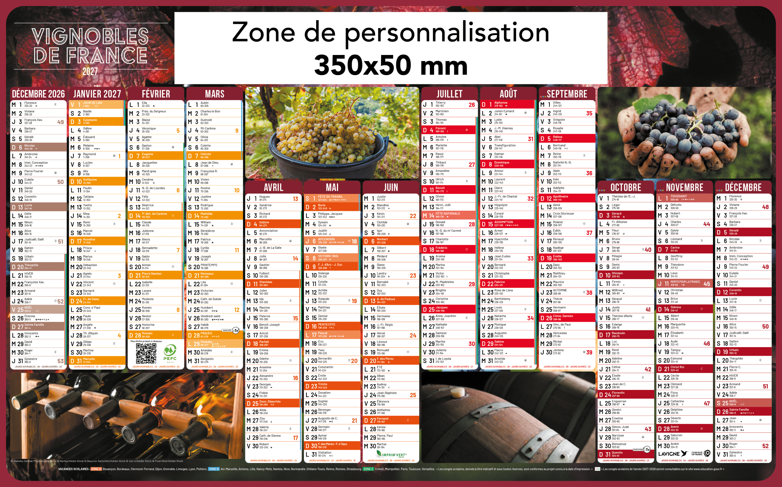 Zone de personnalisation : 350 x 50 mm