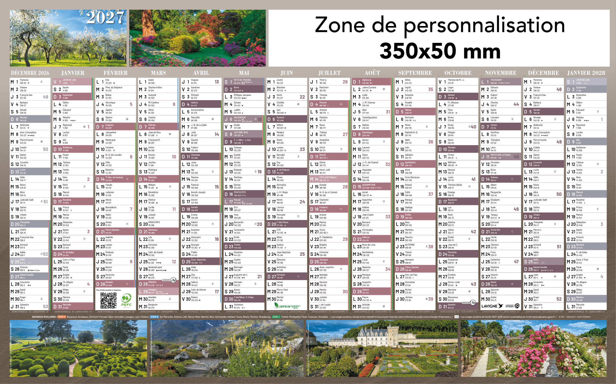 Zone de personnalisation : 350 x 50 mm