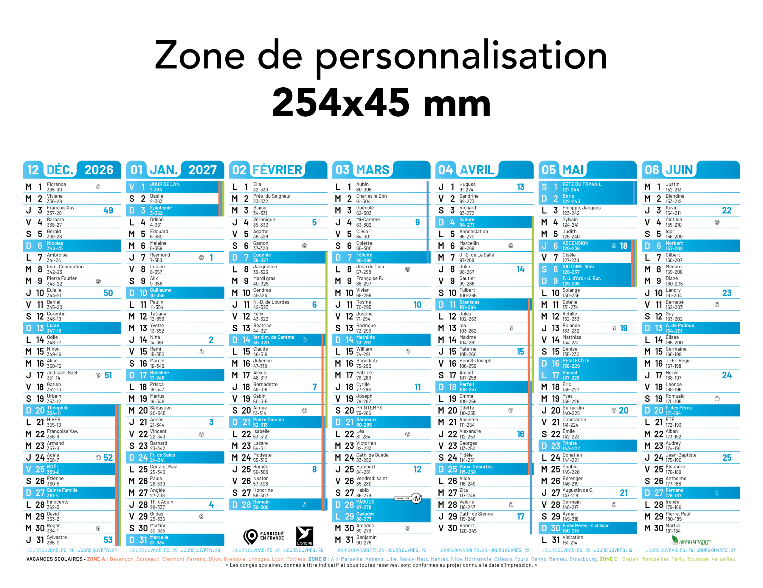 109C – MINI BQ GRILLE CYAN – 2 X 7 MOIS AVEC EVENTAIL DE COULEURS