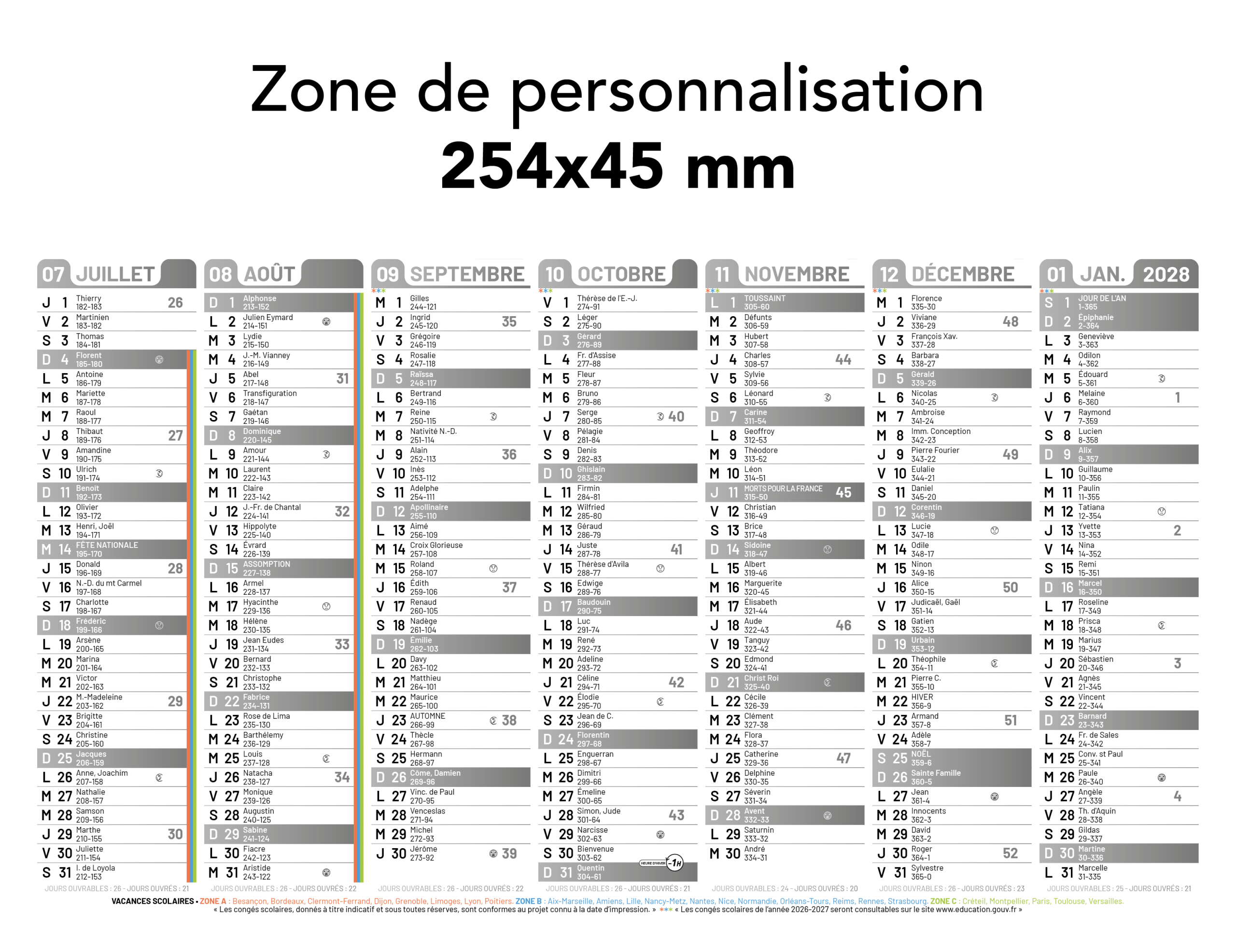 Zone de personnalisation : 354 x 45 mm