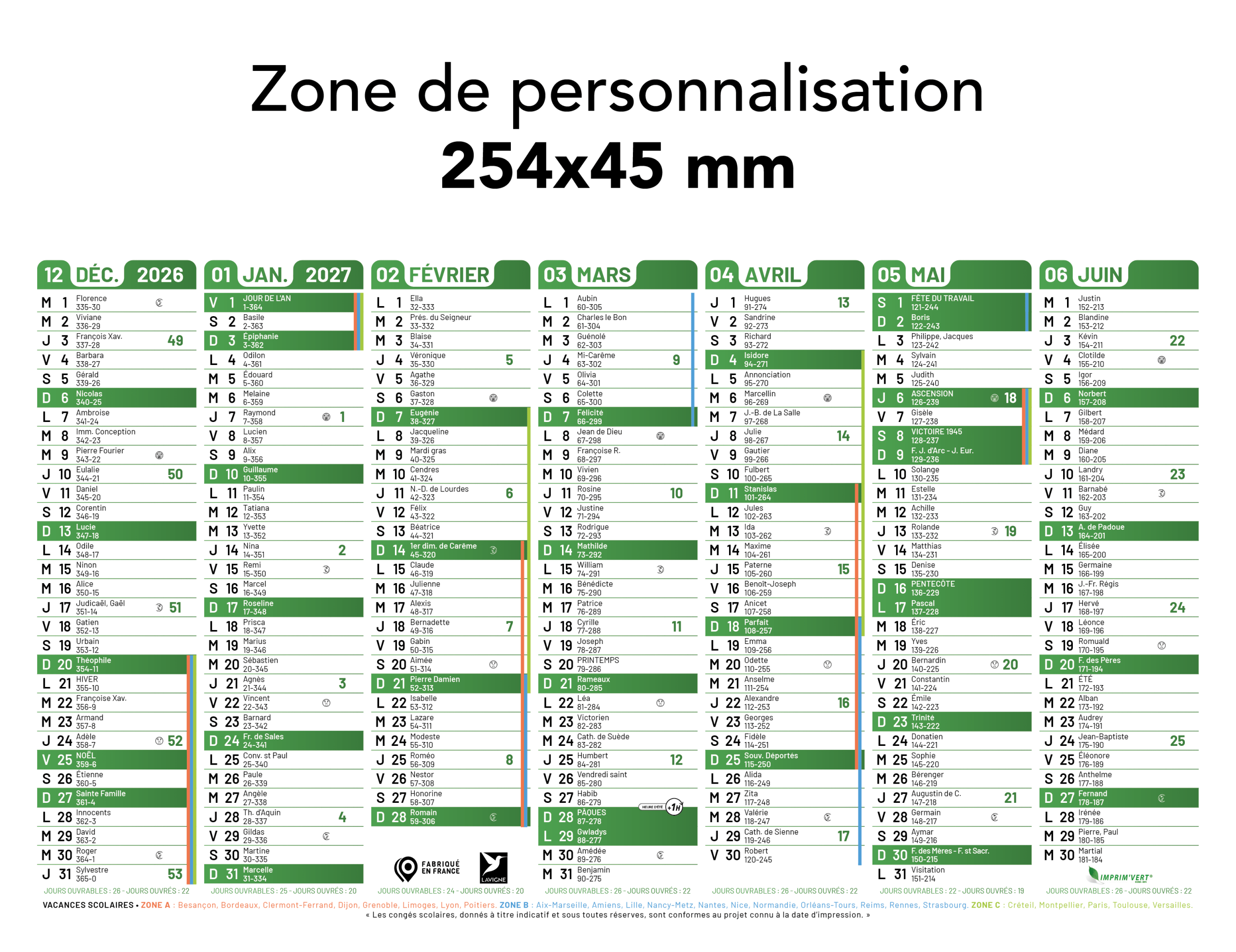 109V – MINI BQ GRILLE VERT – 2 X 7 MOIS AVEC EVENTAIL DE COULEURS