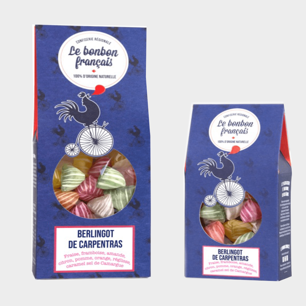 | Bonbons | Farandole de fruits, Berlingots, Pâte de fruits du Vaucluse, Véritable Calisson d'Aix, Tendre Nougat de Provence, Praline Rose, Caramel au beurre salé |