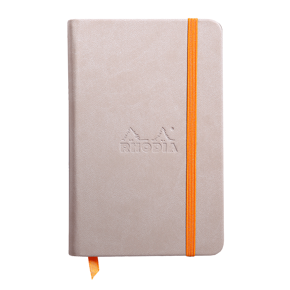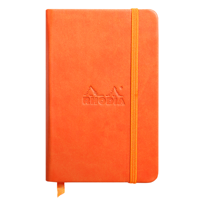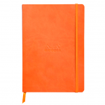 - CARNET DE NOTE À COUVERTURE RIGIDE dos carré collé en simili cuir coloris noir, beige, tangerine, au format A6.